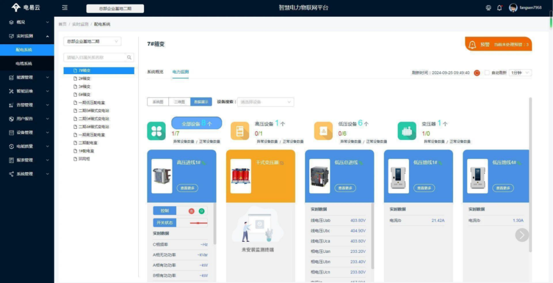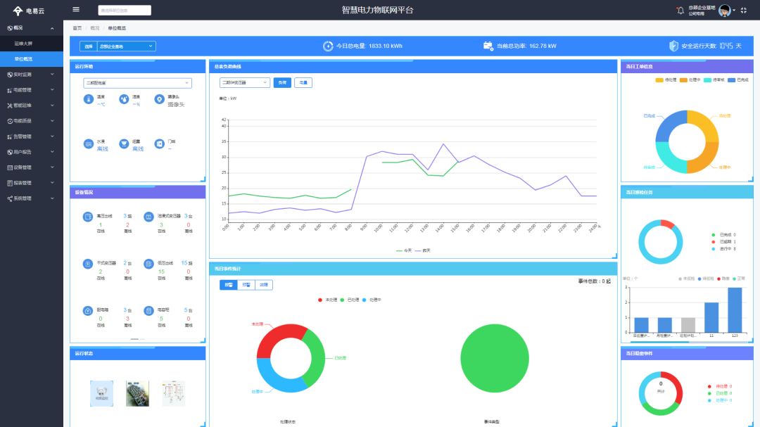 通過將配電室各設備監(jiān)控數(shù)據(jù)集成到電易云監(jiān)管平臺上,實現(xiàn)對配電室環(huán)境的全面監(jiān)控、診斷、工作調度、報警等功能的統(tǒng)一管理和控制。形成了線上、線下工作相結合的新模式。平臺3D效果展示與現(xiàn)場監(jiān)測設備狀態(tài)相結合,還原真實比例與場景更直觀。豐富的方案庫、精細的報表數(shù)據(jù)分析,提高電力供應的穩(wěn)定性和可靠性,降低運營成本,為企業(yè)創(chuàng)造更大的價值。